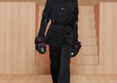 Показ прошел на набережной, которую застелили деревянным настилом и превратили в березовую рощу. Важным элементом сценографии стал огромный бумажный самолетик - как воплощение темы путешествий, с которой связана вся история марки Louis Vuitton (как известно, этот легендарный французский бренд начинал с производства дорожных сундуков). Вот только самолетик был черного цвета - как символ того самого последнего путешествия, из которого уже не возвращаются.