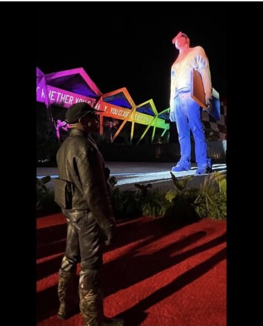 В день шоу на одной из припаркованных у побережья Майами яхт вывесили огромный черный баннер с надписью “Forever”, а на месте показа установили гигантскую статую Вирджила Абло.
