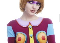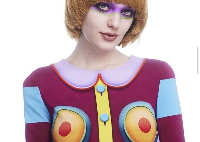 По словам Джереми Скотта, он черпал вдохновение в эстетике фильмов “Бегущий по лезвию” и “Заводной апельсин”, в обложке знаменитого альбома группы The Beatles “Оркестр клуба одиноких сердец сержанта Пеппера” и в оптических иллюзиях французского художника Виктора Вазарелли. Выглядит все это столь же весело, сколь и сюрреалистично.
