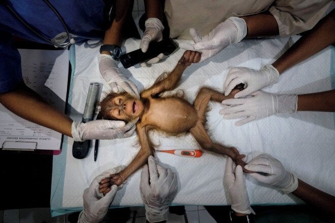 Медработники из организации, которая помогает суматранским орангутанам, готовят к операции трехлетнюю обезьянку Бренду. До этого ее конфисковали у местного сельского жителя — он держал ее в качестве питомца.