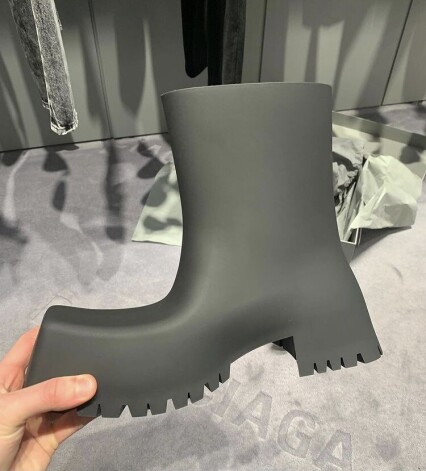 Эти резиновые матовые сапоги под названием Trooper были представлены в весенне-летней коллекции Balenciaga 2022 — официально она считается мужской, но на самом деле унисекс (как и большинство вещей, созданных Демной Гвасалия).