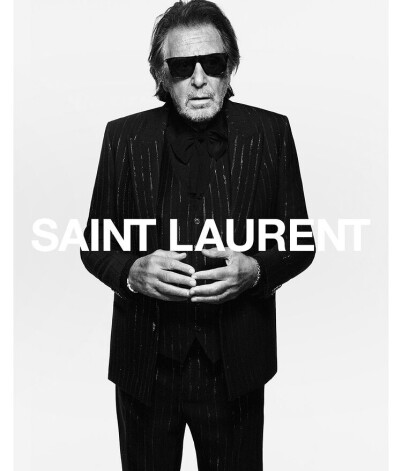 Реклама с Аль Пачино появилась на страничке Saint Laurent в Instagram. На ней оскароносный патриарх Голливуда позирует в полосатом костюме-тройке и черной блузке с бантом на шее. Глаза актера скрыты за очками-вайфарерами — визитной карточкой французского бренда. Автор снимка — Дэвид Симс, постоянный автор рекламных кампаний Saint Laurent.