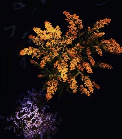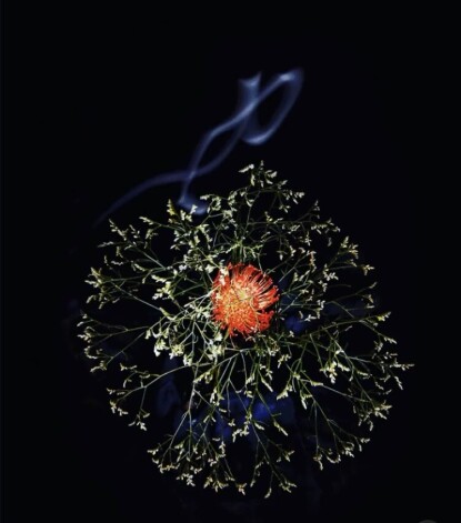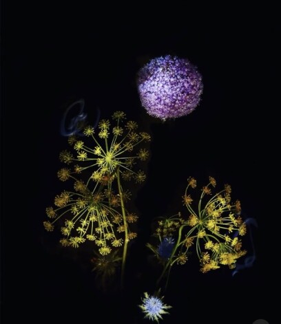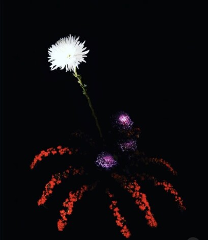 Вдохновившись красотой живых цветов, Сара поместила их на черный фон, подсветила и превратила в залпы фейерверков.