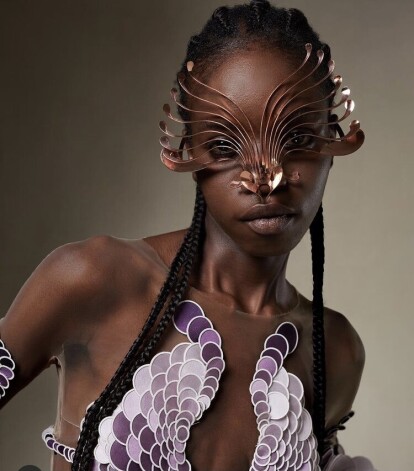 Самый знаменитый автор в этой подборке. Джеймс Мерри известен как креативный директор Бьорк, уже много лет создающий для нее фантастические маски и аксессуары. Помимо Бьорк, его маски любит и Тильда Суинтон (в подобной она была на последнем Венецианском кинофестивале).