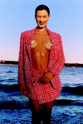 На этот раз девушка предстала в новом живописном лукбуке Self-Portrait — и уверены, глядя на эти снимки, вы тоже захотите оказаться на море. На одном из кадров, сделанных фотографом Харли Вейром, Белла позирует на пляже в фактурном костюме с мини-юбкой и с ракушками вместо бра.