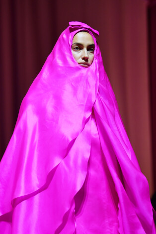 Темой новой коллекции, показанной на Лондонской неделе моды, стала безопасность. В этих огромных пальто и платьях в стиле 50-х, гигантских головных уборах и фирменных куинновских кэтсьютах человек может спрятаться от всего мира, замаскировавшись под рулон ткани или обивку мебели.