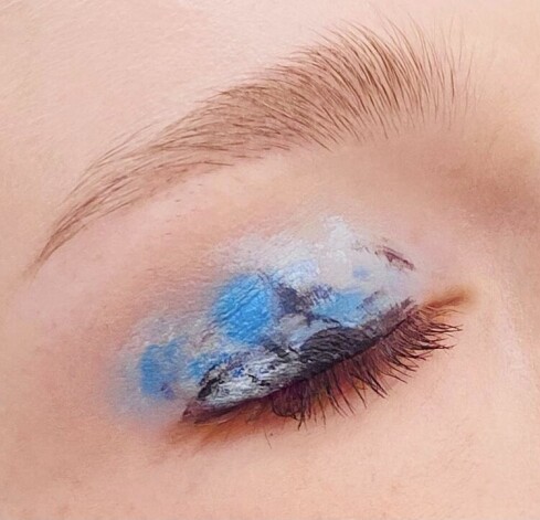 И вот они возвращаются. Связано это и с увлечением 90-ми, и с популярностью сериала “Эйфория”, где визажистка Дониэлла Дэви часто использовала нежные голубые оттенки, и вообще с популярностью цвета как такового, пришедшего в моду после периода пандемии.
