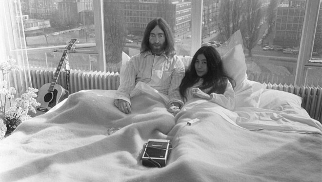 Джон и Йоко провели медовый месяц в борьбе за мир. Они поженились 20 марта 1969 года, а уже 25 марта в Амстердаме начали свой постельный перформанс против войны во Вьетнаме. Целую неделю Джон и Йоко протестовали, не вылезая из постели в отеле “Хилтон” и непрестанно давая интервью. Через некоторое время звездная чета повторила перформанс в Монреале, куда Джон пригласил Тимоти Лири, Аллена Гинзберга, Дика Грегори и еще десяток друзей. В постели же Леннон сочинил и впервые исполнил песню Give Peace a Chance.
