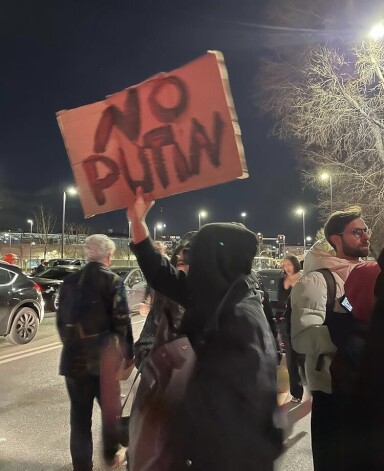 После одного из показов на улице Милана была замечена группа протестующих с плакатами “Нет III Мировой войне” и “Нет Путину”. Как выяснилось, инициаторами акции были две украинские студентки, которые учатся в Милане.
