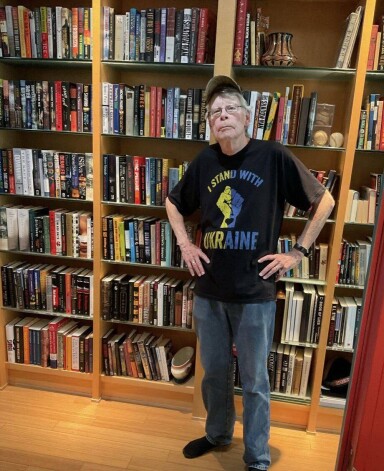 Писатель Стивен Кинг опубликовал в своем Twitter фото в футболке c текстом в цветах украинского флага и прокомментировал его: "Обычно я не публикую фото, но сегодня исключение".