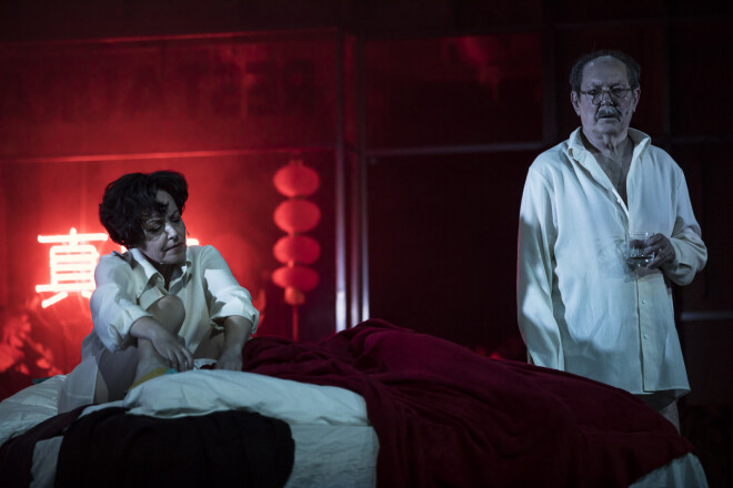 Спустя 68 лет с момента создания она неожиданно приобрела новый, сугубо политический смысл: сегодня весь мир видит в ней украинский флаг (пусть и перевернутый — как перевернулась сама реальность). И когда в конце спектакля ROTKHO над сценой появляются эти две цветные полосы со ставшей уже хрестоматийной надписью о том, куда следует идти русскому военному кораблю, — на секунду начинает казаться, что весь этот спектакль был сделан ради такого эффектного финала. Мол, сам Марк Ротко демонстрирует нам свою гражданскую позицию.