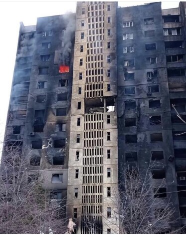 В первый день войны были самые жесточайшие разрушения. В соседние дома ежедневно попадали снаряды, дома горели на наших глазах. Наш дом каким-то чудом оставался в порядке ровно неделю, на восьмой день пострадал и наш дом, в балкон соседей прилетел снаряд, пожара не было, Слава Богу. В двух-трёх десятках квартир высыпались все стёкла. Так же два снаряда упало у нас во дворе перед домом.