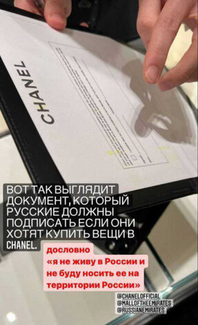 Российская блогерша Лиза Литвин написала о том, что сотрудники бутика Chanel в дубайском «Mall of Emirates» не продали ей сумку, предложив подписать странный документ, по которому она обязуется не ввозить и не носить аксессуар в РФ.