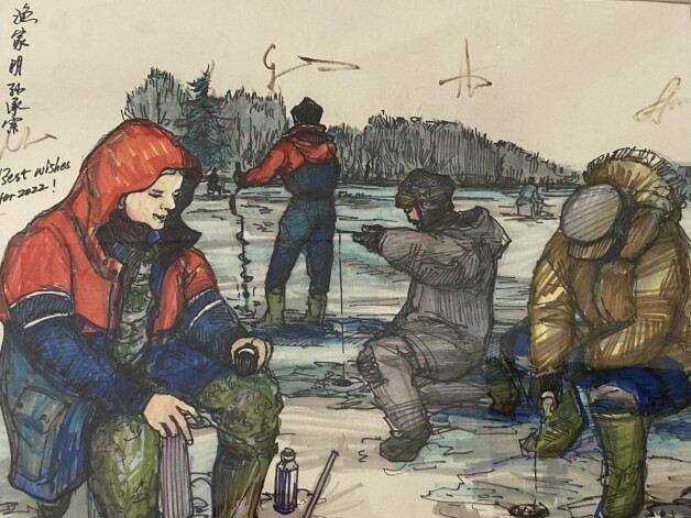 и рисунок, изображающий латвийских рыбаков, вышедших зимой на лед. Кстати, по китайской традиции изображения рыбака считается талисманом, приносящим удачу.
