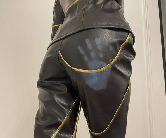 Последняя разработка марки развивает тему телесности. Димитрия создала изделия из веганской кожи, которая чувствительна к прикосновениям человеческих рук: под воздействием тепла на материале остаются отпечатки.