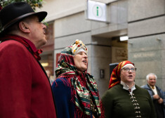 На выставке, открывшейся на первом этаже Galerija Centrs, можно увидеть снимки, сделанные фотографом Янисом Дейнатсом пять лет назад, 4 мая 2017 года, во время первого Шествия народных костюмов. Тогда участники парада прошли по маршруту от Ратушной площади до Национальной библиотеки.