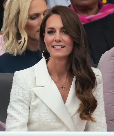 И, наконец, в последний день торжеств, когда у Букингемского дворца был устроен грандиозный концерт, Кейт снова блистала в наряде б/у - этот белый комплект c жакетом букле и плиссированной юбкой Self-Portrait герцогиня надевала на прием в сентябре 2021 года.