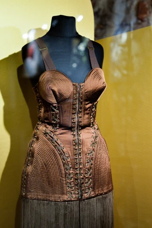 В нашей экспозиции есть платье Джорджио ди Сант'Анджело — американского дизайнера итальянского происхождения, аристократа, чья одежда в безумно ярких красочных тканях была необыкновенно популярна в 1960-е и 1970-е годы. Он делал кутюрные вещи в стиле хиппи — сегодня это большая редкость. Кстати, на нашей выставке вообще очень интересный раздел американских дизайнеров. Там есть и Халстон, о котором недавно сняли сериал, и потрясающий голливудский художник по костюмам Адриан, у которого была и своя собственная марка, и экспериментатор 60-х Руди Гернрайх, и живой классик Ральф Лорен, и артистичный Ральф Руччи...