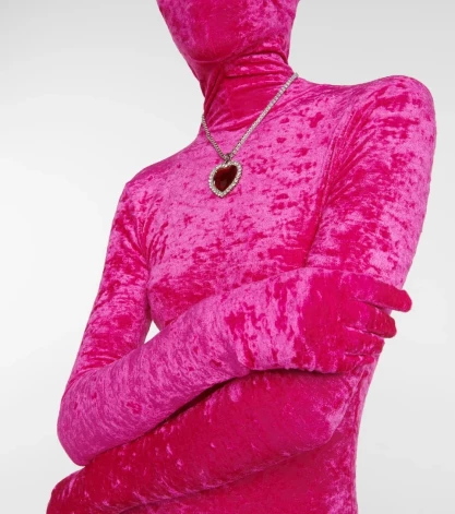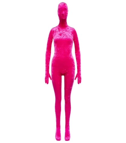 Ну, а Vetements решил не размениваться на оптические иллюзии, а просто взял и спрятал все тело, включая голову, в глухой бархатный комбинезон. Цена - €1,259.