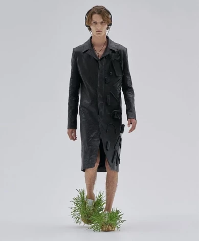 В новой коллекции Loewe, показанной на Неделе мужской моды в Париже, смешались тренды, технический прогресс и природа. Пальто, толстовки, брюки, обувь - все это поросло мхом и травой.