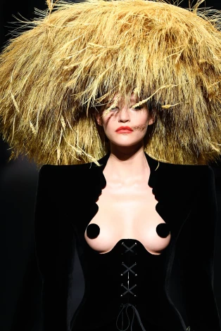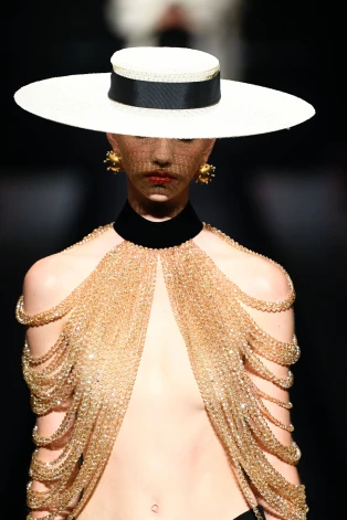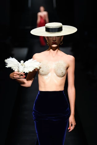 Впрочем, не цветы находятся в центре его новой коллекции, а женская грудь. Тенденция к откровенному обнажению бюста - одна из заметнейших в новом сезоне, но Schiaparelli старается оголять грудь максимально деликатно, по возможности прикрывая соски. Делается это при помощи цветочных “нашлепок”…