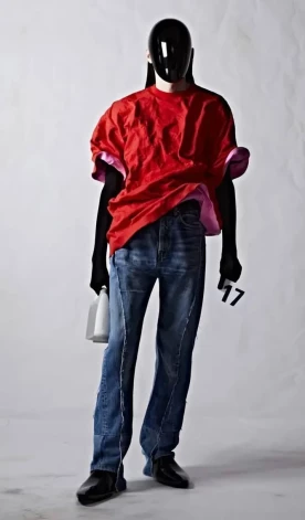 Коллекция объединила в себе образы, созданные на основе классических силуэтов Кристобаля Баленсиаги, и собственные “фишки” Демны Гвасалия - такие, например, как глухие комбинезоны, напоминающие костюм водолаза.