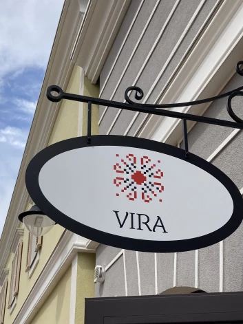 Название бутика — Vira — с украинского переводится как “вера”, а в национальном орнаменте, украшающем вывеску, закодирован символический смысл. В древности этот узор считался оберегом, его вышивали мамы на одежде своих детей.