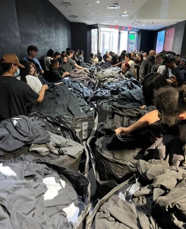 В Нью-Йорке на Таймс-сквер специально для продажи вещей из совместной коллекции Yeezy Gap Engineered by Balenciaga открыли магазин, больше похожий на склад секонд-хэнда.