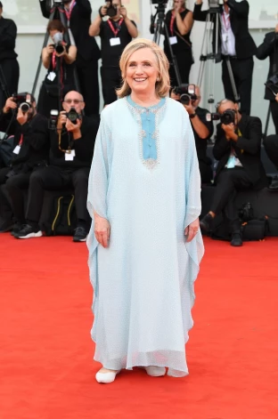 Хиллари Клинтон неожиданно появилась не в брючном костюме, в котором ее привыкли видеть, а в платье-кафтане.