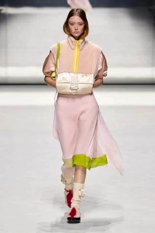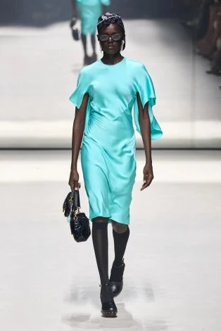Помимо всего прочего, на шоу был показан результат сразу двух коллабораций Fendi с известными брендами. Первая — c маркой Tiffany & Co (об этом говорил фирменный голубой цвет).