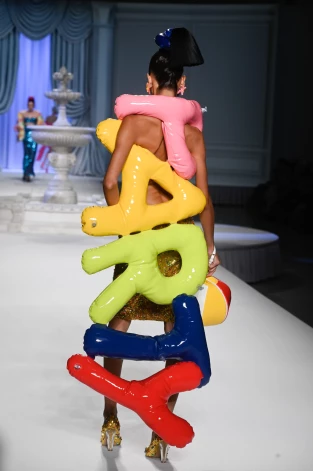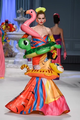 В 1989 году основатель марки Moschino, легендарный и эпатажный дизайнер Франко Москино в коллекции Cruise Me Baby представил жакетик, который очень напоминал тот спасательный жилет, что хранится под сидением в самолете на случай непредвиденной ситуации. Нынешний глава дома Джереми Скотт, продолжающий дело Москино по высмеиванию потребительской культуры и общепринятых клише моды, вдохновился этим жакетом и создал целую надувшую коллекцию.