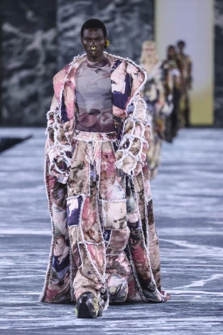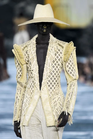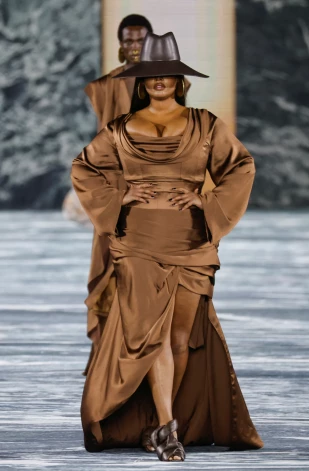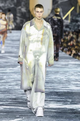На показе выступили Shygirl, CKay и The Blaze, но главной звездой стала 76-летняя Шер. В начале шоу публика увидела ее в виде голограммы и рисунка а ля Витрувианский человек Леонардо да Винчи (тем самым намекалось на ее идеальные пропорции).