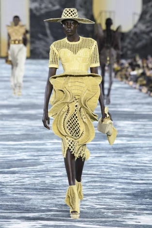 Было показано 98 образов прет-а-порте плюс 15 кутюрных нарядов, хотя грань между первыми и вторыми была практически незаметной.