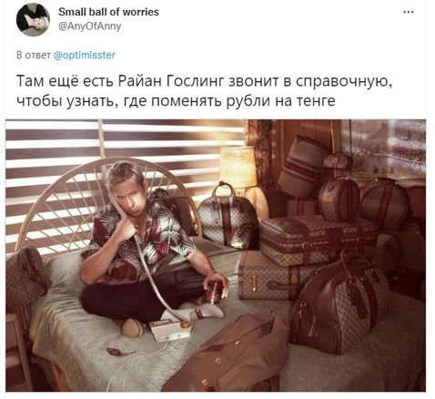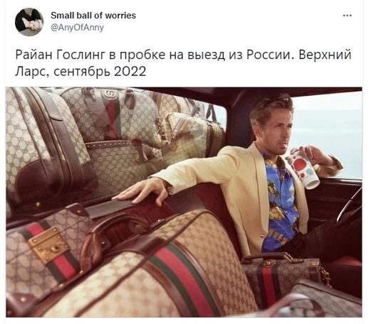 Реклама сумок и чемоданов Gucci, в которой снялся популярный голливудский актер Райан Гослинг, дала повод горько пошутить на тему бегства россиян от мобилизации.