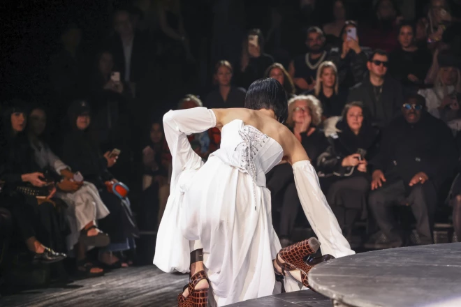 На показе Vivienne Westwood модель опять упала с гигантских платформ