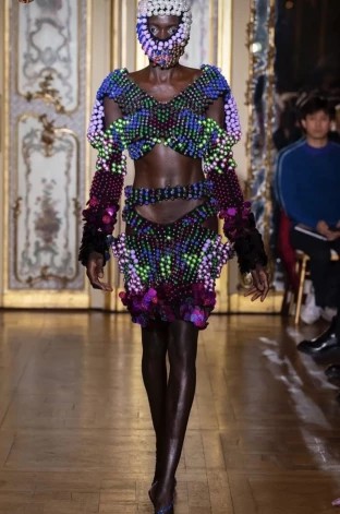 Швейцарский дизайнер Кевин Германье настаивает на том, что одежда должна вызывать у нас исключительно радость и детский восторг. Его наряд из бусин - отличное тому подтверждение.