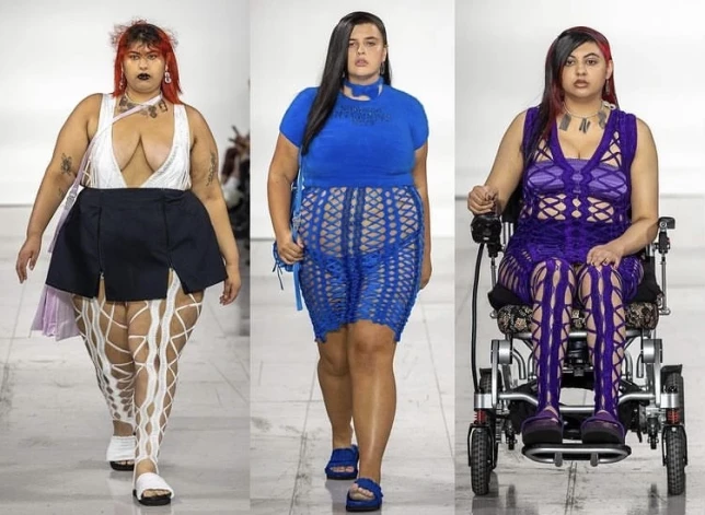 Согласно новым требованиям, в показах теперь участвуют модели самых разных комплекций. Но королевой дайверсити можно назвать британского дизайнера Шинейд о’Двайер: на ее показе было представлено наибольшее количество нестандартных фигур.