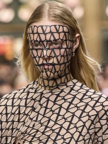 Valentino предложил вновь поиграться монограммами: принт с одежды переходит на лицо.