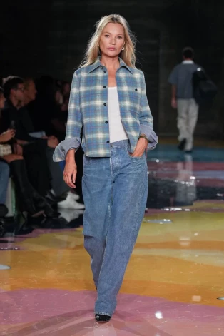 Этот образ “девушки из соседнего подъезда” от Bottega Veneta в исполнении Кейт Мосс не так прост. Все эти вещи - и майка, и джинсы, и рубашка в клетку - были созданы из кожи, причем таким образом, что у них даже нет швов.