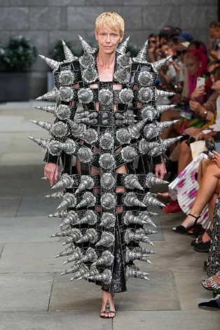 Вряд ли такую одежду можно носить где-либо, кроме подиума, но идея авторов коллекции AREA понятна: в новом сезоне нам всем придется обороняться.