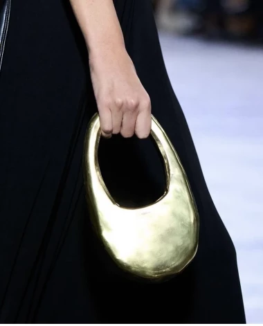 Coperni, который в прошлом сезоне прославился своей сумкой из стекла, на сей раз повторил ту же модель из чистого золота.
