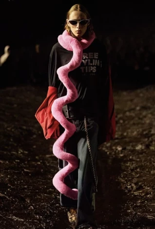Шарфы в этом сезоне особой популярностью не пользовались, но Balenciaga предложила эффектное боа, напоминающее знаменитую змею из магазина IKEA.