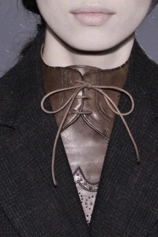 Maison Margiela выпустил колье-ботинок, продолжающий идею Эльзы Скиапарелли о том, что предметы одежды могут легко путешествовать по телу (вспомним ее знаменитую шляпу-туфлю).