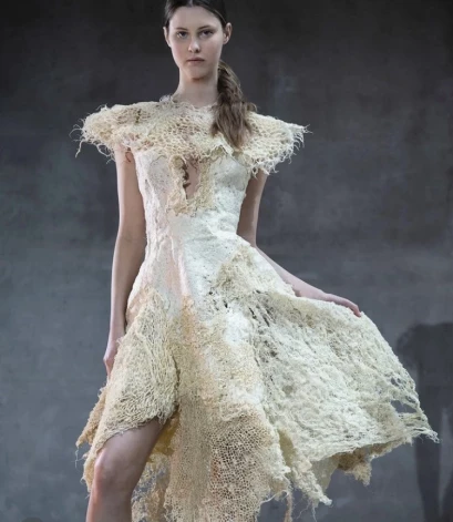 Такой корневой текстиль не наносит вреда окружающей среде и согласуется с устойчивой и компостируемой модой будущего.