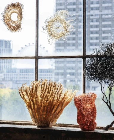 Она выращивает различные растения таким образом, что их корневая система переплетается, превращаясь в материал для создания различных предметов искусства - ваз, светильников, предметов домашнего декора.