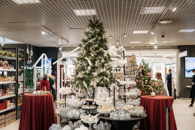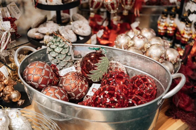 На открывшейся недавно рождественской ярмарке можно найти все для создания атмосферы праздника - украшения, посуду, текстиль, елочные игрушки и прочий декор.