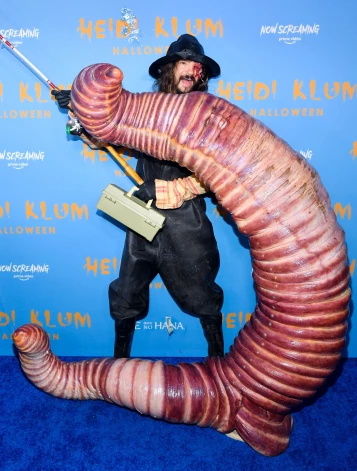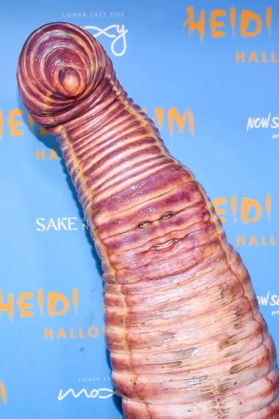 На своей традиционной вечеринке в честь праздника Хэллоуин немецкая супермодель Хайди Клум продемонстрировала костюм червяка.