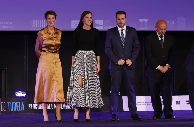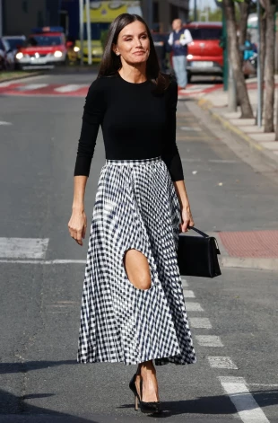 Вчера, 2 ноября, королева Летиция посетила кинофестиваль в Новарре. Для своего выхода любимица публики надела довольно необычную юбку, которая вызвала волну критики в Сети. Речь идет о юбке в клетку виши демократичного бренда H&M за 112 долларов. Изначально классическая приталенная модель с легким плиссе вызвала недоумение из-за выреза в виде… дырки!