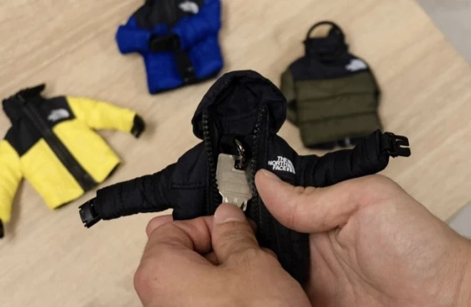 Для любителей миниатюрных аксессуаров выпущены и ключницы The North Face в виде пуховиков. Тут все, как у людей: куртка из переработанного нейлона, съемный капюшон…