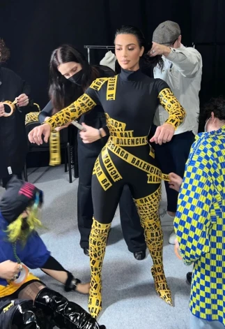 Этот гениальный в своей простоте аксессуар, работающий по принципу "Сделай сам!", марка продемонстрировала еще весной, когда показывала в Париже свою коллекцию осень-зима 2022/2023. Тогда при помощи скотча был создан комбинезон для Ким Кардашьян.